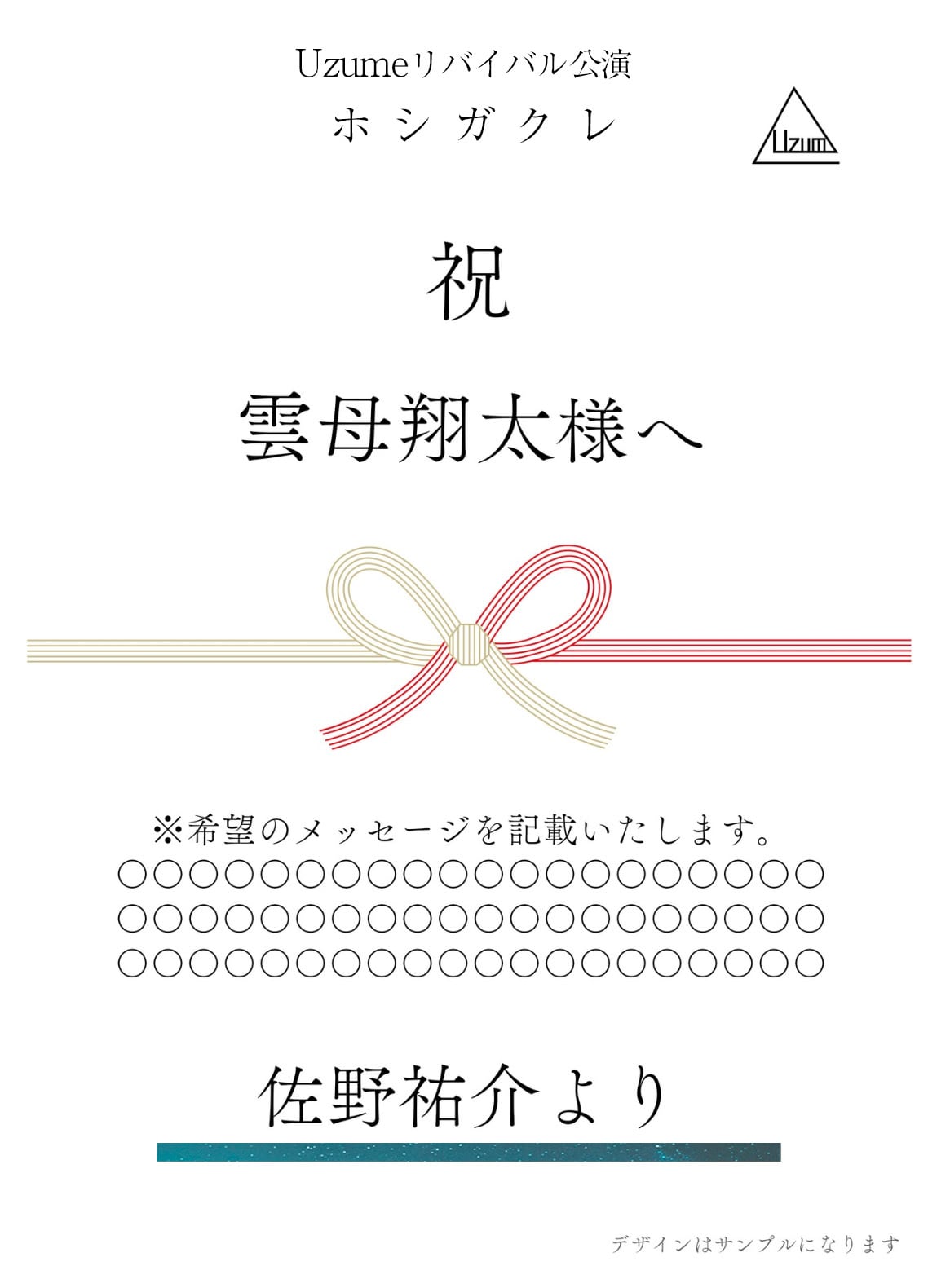 舞台「ホシガクレ」応援熨斗